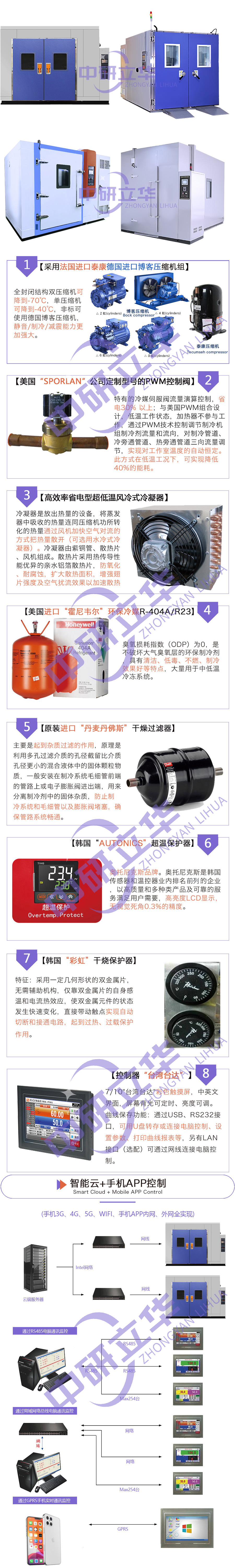 產品用途 步入式恒溫恒濕試驗箱是通過技術手段,以自然環境中較常遇見之溫濕度加以模擬,以數倍于自然環境之嚴苛條件加以組合,測試樣品性能的試驗設備。主要應用于國防工業、航天工業、自動化零組件汽車部件、電子電器件、塑膠、化工、制藥等相關行業,適合于測試產品量多、體積大的試驗。無論耐熱、耐寒測試,還是為產業界提供大型零件,半成品,成品之大型溫濕度測試環境空間都能勝任。